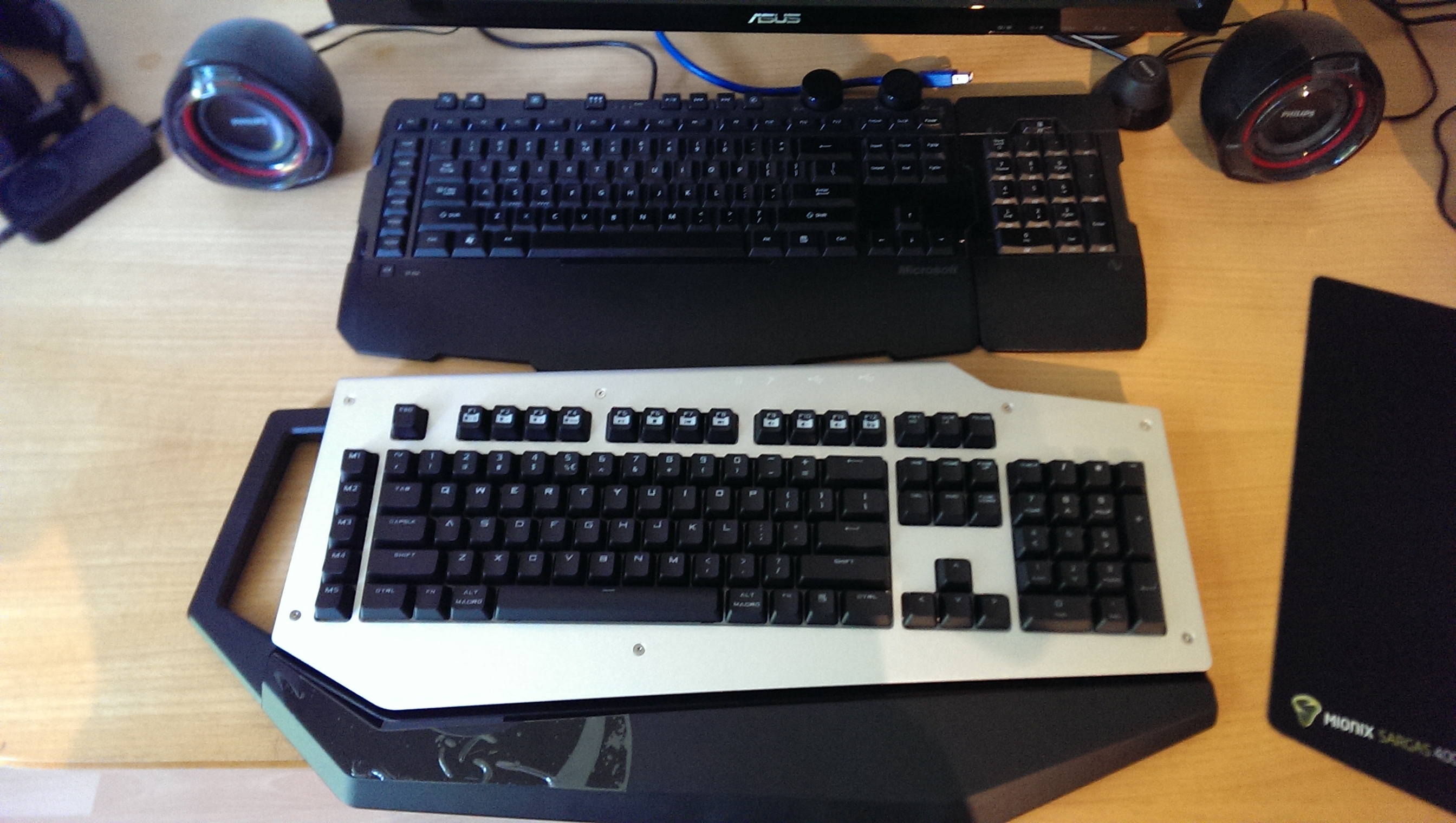 Ik zat te kijken naar de RGB MX toetsenbord van Corsair, maar die is nog niet uit, en naar het schijnt zelfs vertraagd met een paar maanden. De CM Storm Aluminum Gaming Series vond ik er eerst wel mooi uit zien, maar met dat handvat heb ik niet zoveel.
