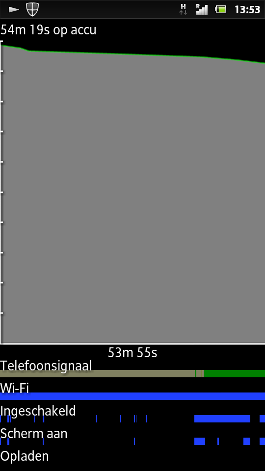 Edit: Vergeten te vermelden, mijn WiFi is continu aan geweest, 3G + Autosync ook. BT, NFC, GPS uit.