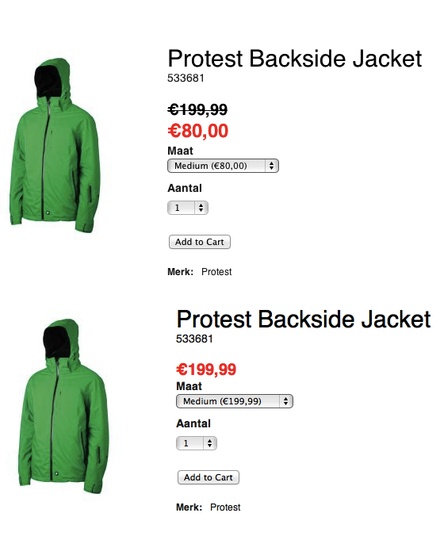 Hieronder ook nog een tweetal screenshots van de prijsverandering: