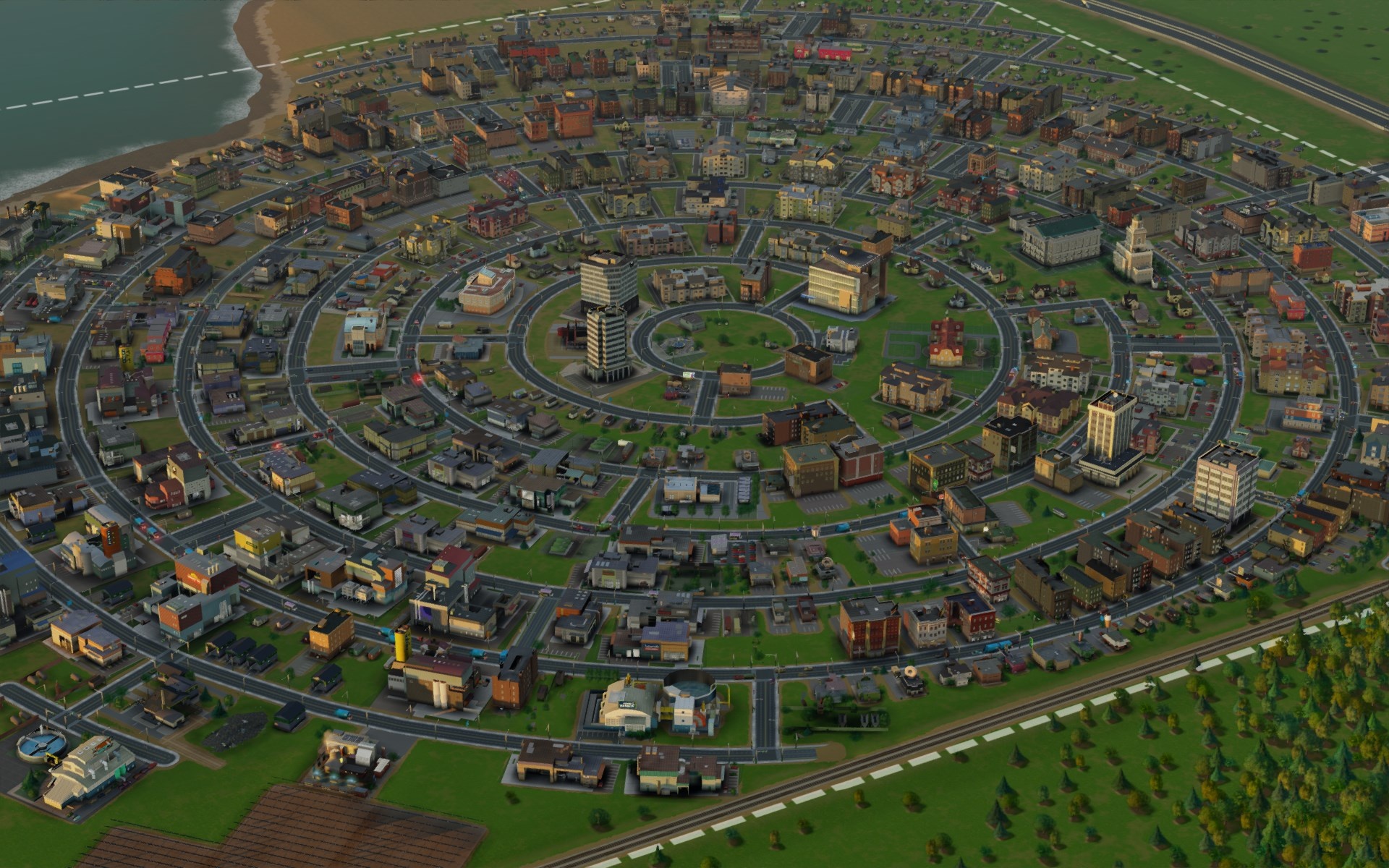 En het vervelende is, de enige uitdaging die je hebt is het verkeer. En wat is het slechtst te managen? Verkeer. Je hebt geen eenrichtingsverkeer, geen viaducten, geen turbo rotondes, geen mogelijkheid tot aparte stroken. Het is enkel wegen aanleggen met stoplichten, meer is er niet te doen. Het grootste probleem in de ontwikkeling van de stad is het slechtste te managen. Ik zou het liefst in het centrum van de stad twee grote eenrichtingsverkeer straten aanleggen waartussen ik alle belangrijke services zet met aan beide straten garages. Viaducten die over wegen gaan om kruisingen te voorkomen zouden ook ideaal zijn. Dan kan je lange avenues hebben met een paar kruisingen en dan gaat het gros van de kleinere wegen er gewoon overheen.