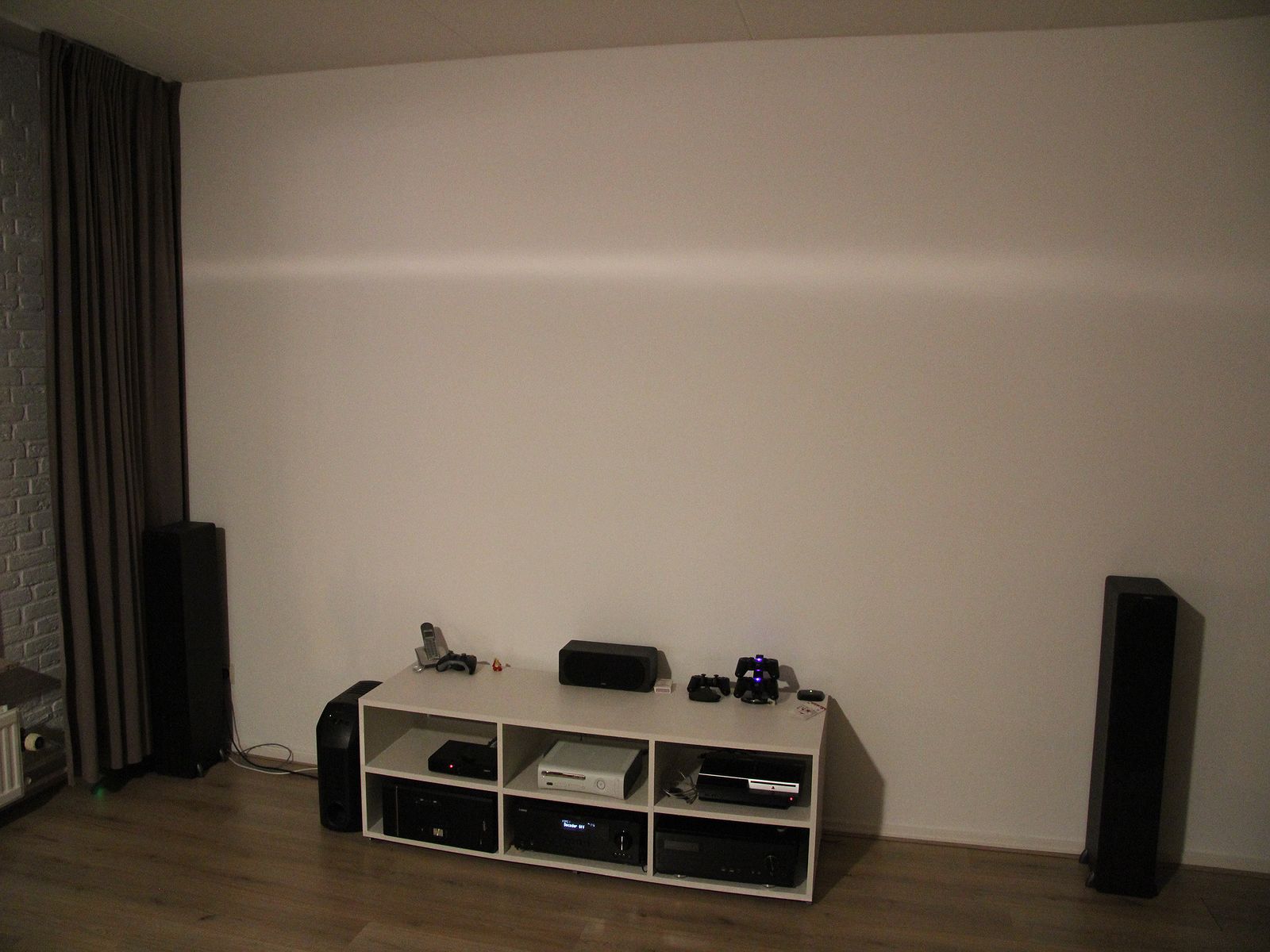 Het liefste zou ik later (in een koopwoning) een aparte ruimte voor de home cinema willen hebben met een 7.x setup en beamer + scherm. En dan in de woonkamer een stereoversterker + twee zuilen voor de muziek.
