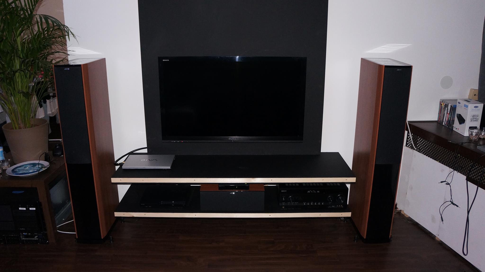 de media kast (self made aangezien geen enkele kast diep genoeg was voor onze apparatuur)
