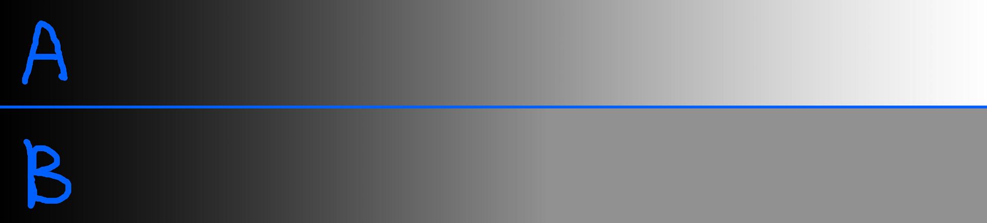 Ik maak nog wel eens een heightmap voor een game of een displacement map voor 3ds Max en waar ik nog wel eens tegenaan loop zijn de "witte puntjes" die als een soort ruis m'n map ongelijk maken. Nou kan je met 't contrast, levels, curves gevolgd door een lichte blur nog wel 't een en ander verhelpen, maar 't liefst zou ik de maximale grijs (of wit?) waarde willen verlagen zonder alle grijswaarden daaronder aan te passen. Omdat het lastig te beschrijven is heb ik maar even een voorbeeld gemaakt, ik zou dus een slider van 255 naar 145 willen verplaatsen op zo'n manier dat A er als B uit komt te zien: