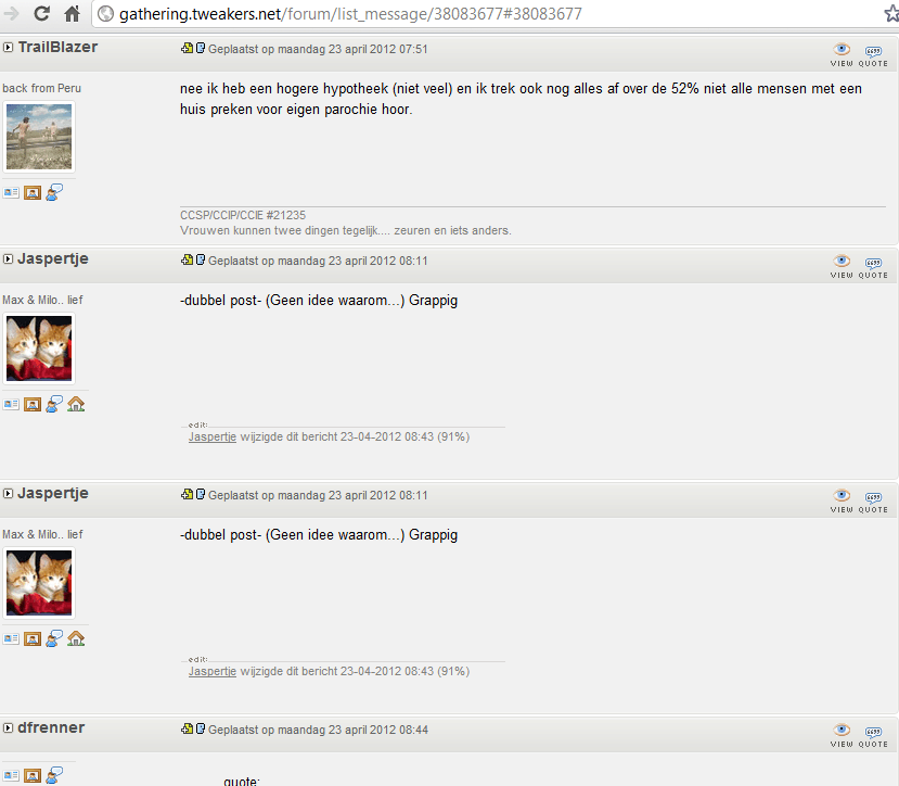 *Edit3* Daar op klikken levert mijn post slechts eenmaal op, en wel zoals origineel geplaatst.