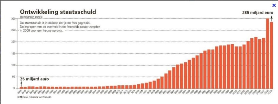 In de tabel links staat het verloop van de staatsschuld sinds 1900.