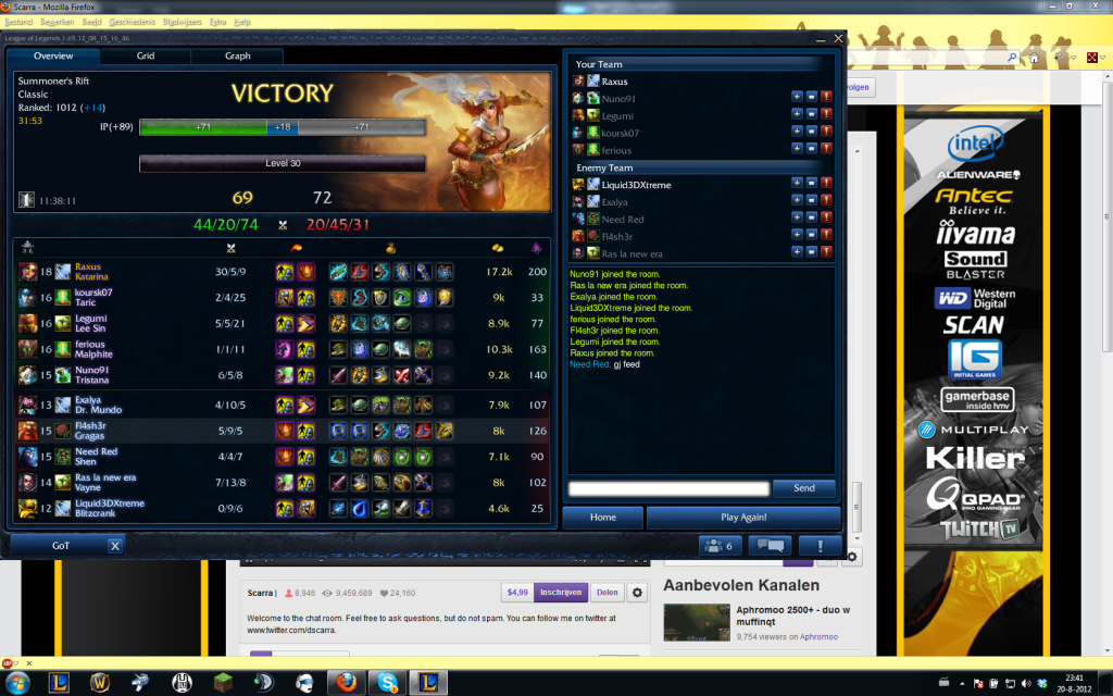 - Mid win ik bijna altijd met Galio, ben ik niet veel aan Gragas toegekomen (1 game en die verloor ik) en haal ik ~60% met Kennen. Mids als Karthus e.d. heb ik te weinig gespeeld om daar goed mee overweg te kunnen, met andere mids dan de genoemde 3 heb ik een (verreweg) lager winpercentage dan 50%