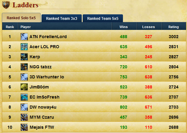 Het is 1500 voor solo queue, 1450 voor ranked 5's en 3's.SHEePYTaGGeRNeP schreef op maandag 24 september 2012 @ 09:12: