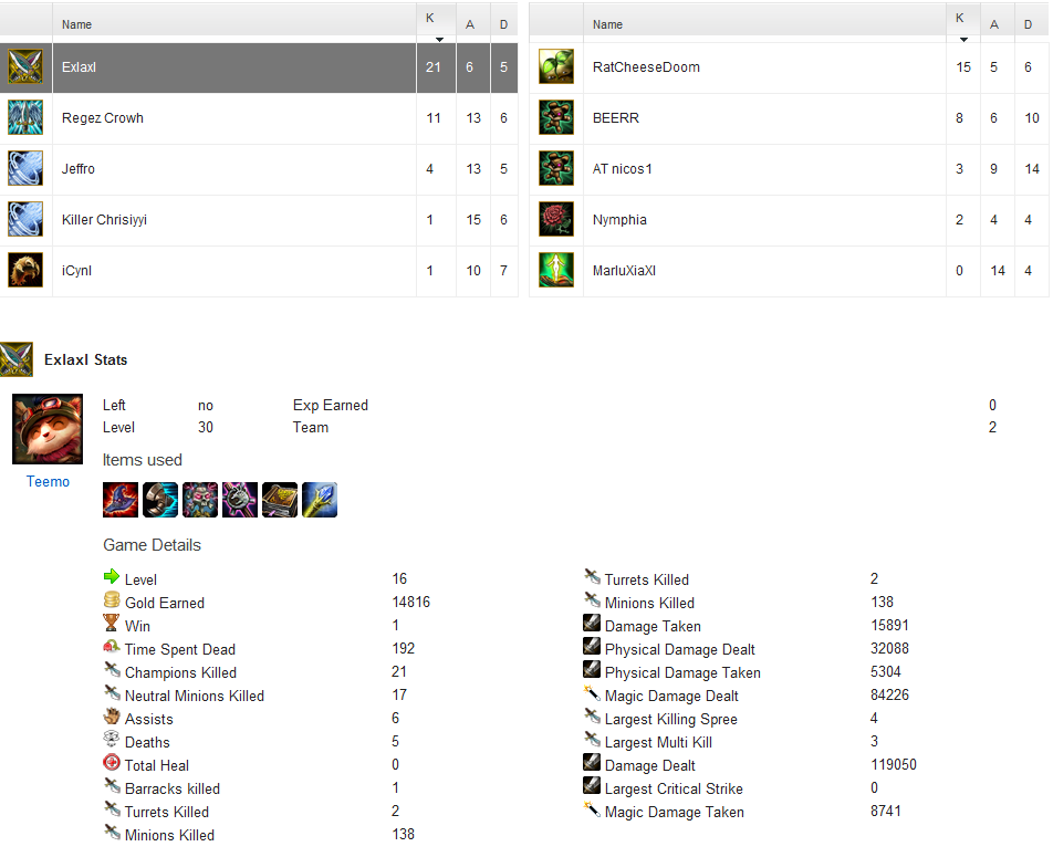 Geen id qua gold en kills maar wel een keer onze nexus op 5% hp gehad en hun al hun turrets nog. We acen hun en maken het af, ook na denk ik een uur gespeeld te hebben.Lointje schreef op woensdag 26 september 2012 @ 09:45: