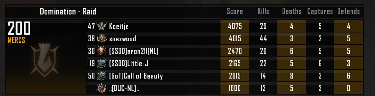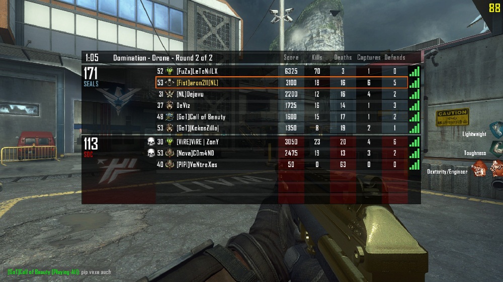 Beetje jammer dat hij een booster nodig heeft om 70-3 te kunnen halen. Ik haal die scores niet zo vaak, maar zie mijn buddy ze toch wel een paar keer per avond halen. Als het potje al zolang duurt, meestal is het toch voorbij met een ragequit of een triple cap. Dat is eigenlijk het lastige aan dat soort scores, meestal kom je niet verder dan 40-0 40-1 of iets in die richting voordat het gejank om hackers en cheaters begint en wordt opgevolgd door een ragequit. Ik weet dat om die reden mijn buddy al is gewisseld naar lage scorestreaks met EMP systems als maximum om het geragequit tot een minimum te beperken.