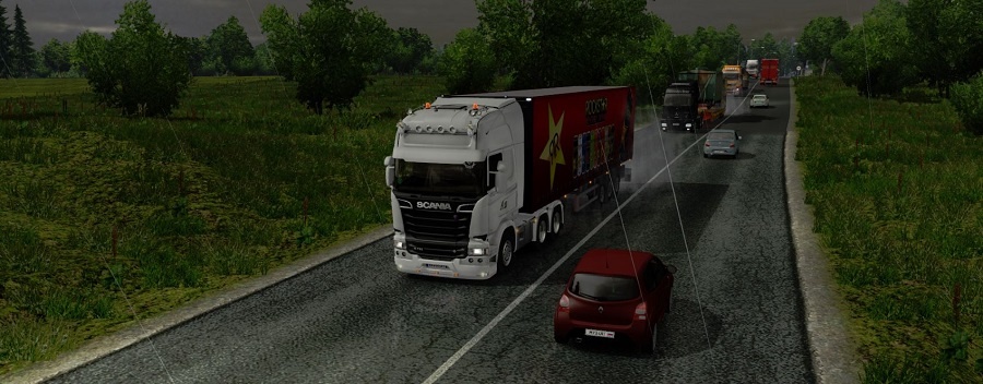 Wat voor Scania mod heb je? Die bumper zit niet in de vanilla game volgens mij... Ik vind de RUSmap echt heerlijk rijden