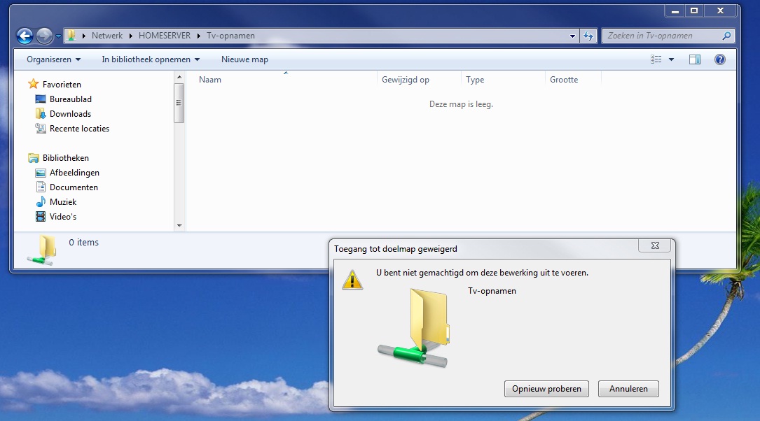 Dus ik heb toegang tot de map "tv-opnames" en "documenten".