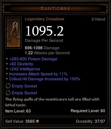 2 sockets en 100% crit damage zie je niet vaak. Met die dex erbij moet 'ie minstens 60-70mil opleveren, als het niet meer is.Bosmonster schreef op donderdag 01 november 2012 @ 22:15: