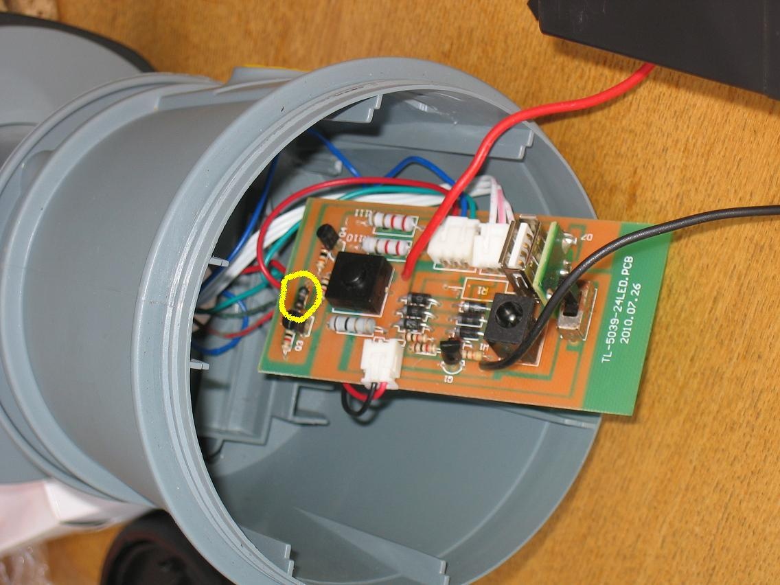 even dat ding opgeschroefd en ik kom tot de ontdekking dat er een weerstand verbrand is.