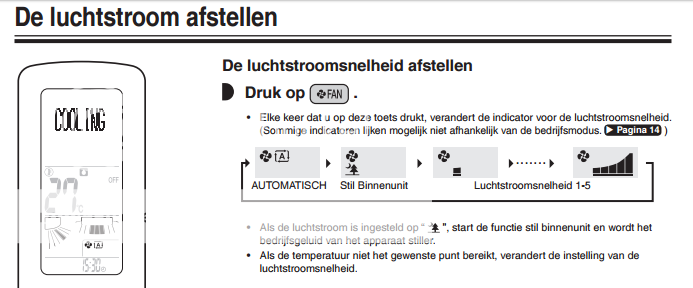 Met die setting zit ik nu even, want zoals in mijn eerdere bericht had ik de gewenste temp op de AB op 18 ingesteld. Normaal stond hij op 20. De unit ging uit (die uitblaastoosters bleven open staan). Na een klein uur gaat hij uit zichzelf weer blazen (stand 1), ik verwachtte dat hij ook weer uit ging. Maar nu ruim 2 uur later blaast hij nog en heb ik het idee dat hij het dus 2 graden kouder willen hebben.