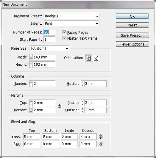 Mijn vriendin en ik zijn bezig om een boekje te maken voor de bruiloft van haar zus. We lopen alleen tegen een aantal configuratie-probleempjes aan bij het instellen van de page sizes, margins, bleeds en slugs.