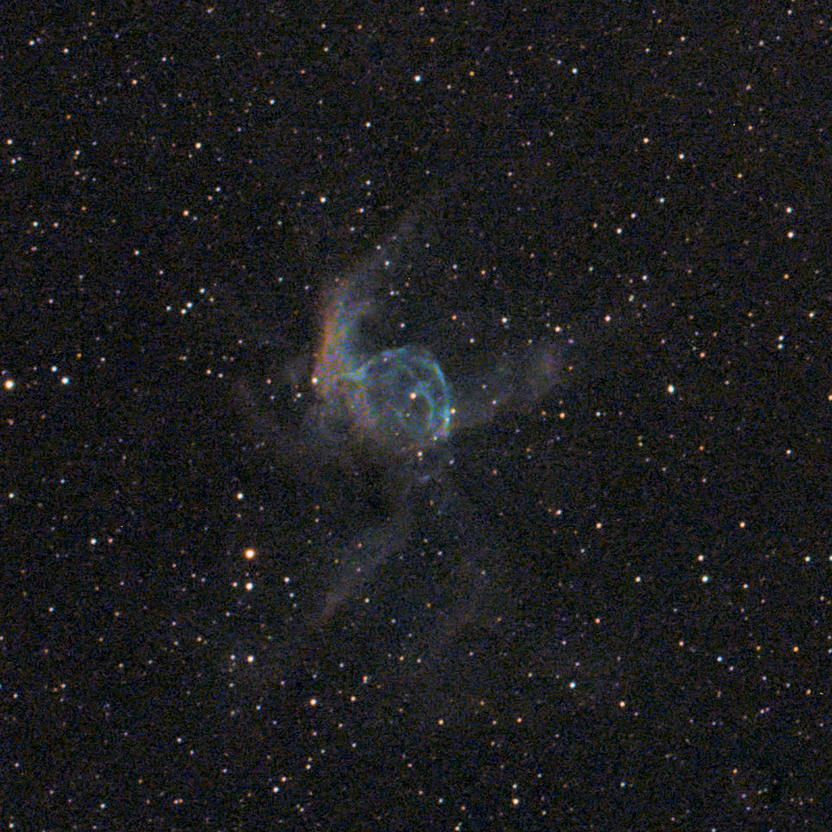 Daarnaast heb ik van Thor's helmet (NGC 2359) in sterrenbeeld Canis Major (grote hond) ook nog wat fotonen weten op te vangen: 30x120 secondes met dual band filter en 99x30 secondes met UHC-filter.