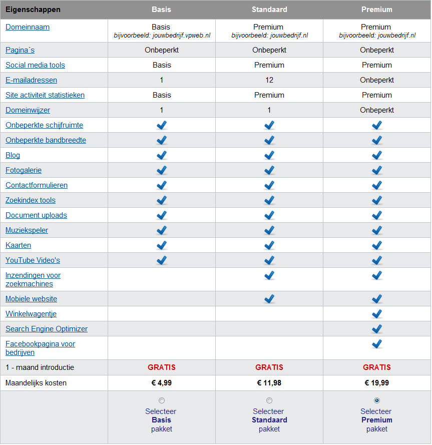 Zo wil ik toch wel graag de functionaliteit van een winkelmandje, maar betaal ik op jaarbasis E 194.04 wat ik toch echt wel te veel geld vind... Zie overzicht: