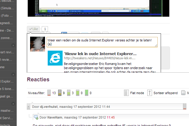 Bij het klikken op 'Like' onder een artikel, is de submit knop niet zichtbaar.