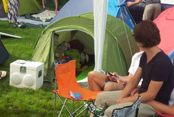 AH ja lowlands. Ik was er ook en de kist was met ons mee! Wij hebben 7AH accu's en we spelen vierkanaals met 2 TA2024's (2 x 10w voor het sublaag en 2 x 10w voor de fullrange speakers). De eerste accu heeft het de hele donderdag, vrijdagochtend en zaterdag een stukje uitgehouden (denk 12u ofzo) maar de 2e accu was slecht, die heeft maar 3 uurtjes gespeeld ofzo