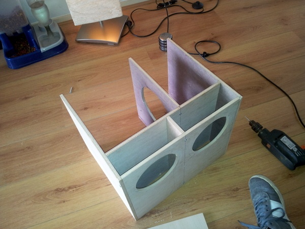 We gaan hem deze winter misschien wel opnieuw bouwen. En dan met iets kleinere fullrange speakers (16cm is niet nodig met een sub) en niet zo'n ingewikkelde klep met daarin weer een klepje (dat volloopt met water op een zeilboot, tot zover het waterbestendige aspect