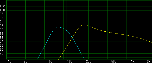 Sorry maar die SD215 gaat dat dus echt niet halen, heb je dat gemeten? De SPL is 86.4 tegenover 95 van de Faital (datasheet getallen, is dit trouwens al met parallel schakelen van de dubbele voice coil?). Als je dan nog even in de datasheet kijkt dan zie je dat die dat alleen haalt bij een piek rond de 150/200Hz. Bij 65Hz is deze nog maar 83dB/w/m. De Faital heeft op 100Hz nog 90dB/w/m.