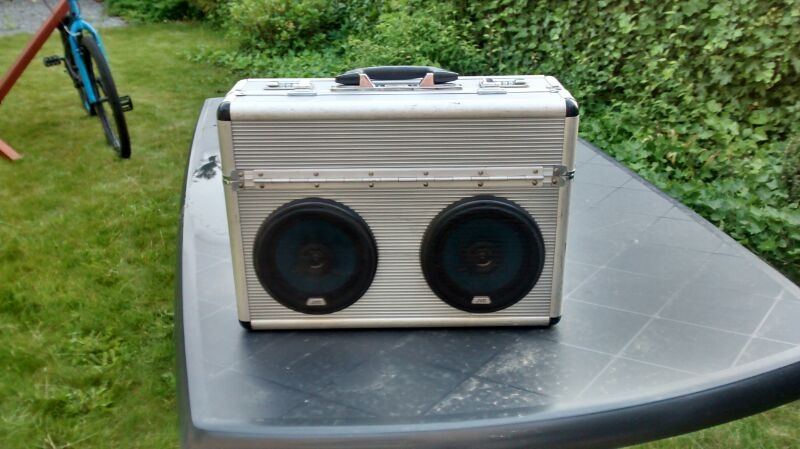 ps kan ook aan het stopcontact en USB/SD/Jack aansluitingen en een afstandsbediening die zelfs werkt met de deksel erop.