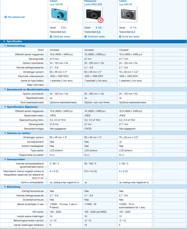 Ik ben al een tijdje aan het lezen en rondkijken en ik krijg de indruk dat er maar één goede compacte fotocamera is, namelijk de Canon PowerShot SX240HS (of zelfs de SX260HS). Deze wordt ook veelvuldig genoemd/aanbevolen in dit topic. Maar doe ik daarmee geen andere modellen/merken te kort? De Olympus SZ-31MR bijvoorbeeld, heeft ook prima specificaties, op papier misschien wel beter dan de Canon.