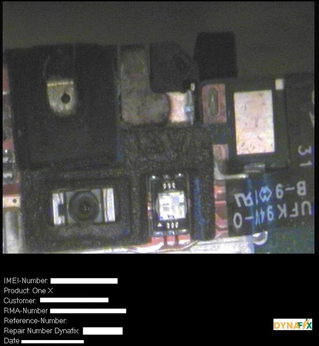 Mijn One X begon een aantal weken geleden kuren te vertonen aan het scherm (Blank screen en freezes). Opgestuurd naar dynafix met garantie certificaat van HTC. Krijg ik vandaag het bericht dat er waterschade is geconstateerd met onderstaand foto's als "bewijs":
