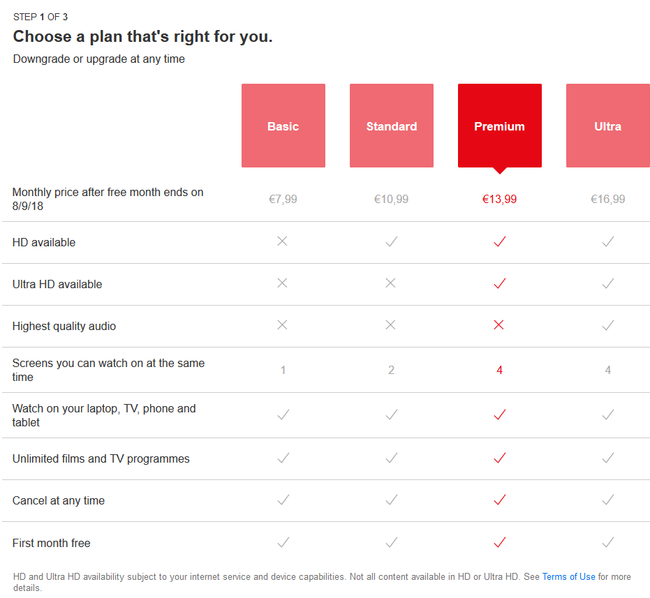 In het geval van Netflix is er niet meer keuze, alleen een prijsverhoging door de features van het oude duurste abbo door te schuiven naar een nieuw nog duurder abbo.....