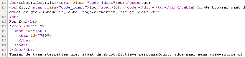 Dat is één manier (het zojuist genoemde escapen) om toch XML weer te geven; een andere is deze oplossing gebruiken of zelfs met een content-type text/xml of application/xml. Maar al die oplossingen zijn alleen bedoeld voor wanneer je die XML wil weergeven in je browser. Ik neem echter aan dat je iets met die XML wil gaan doen (verwerken, in een DB proppen, weet-ik-het) i.p.v. weergeven. En dan hoef je die zaken dus helemaal niet te gebruiken maar juist een DOM/SAX parser.Verwijderd schreef op donderdag 18 oktober 2012 @ 15:13: