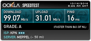 Ik overweeg Telfort, maar op hun website spreken ze alleen over Internet Standaard (40/4) en Extra (80/8). Is jouw 50/5 een oud abonnement en je nieuwe '100Mbit pakket' de praktische snelheid van het 80/8 pakket op jouw adres?ThinkPadd schreef op zaterdag 01 oktober 2016 @ 16:27: