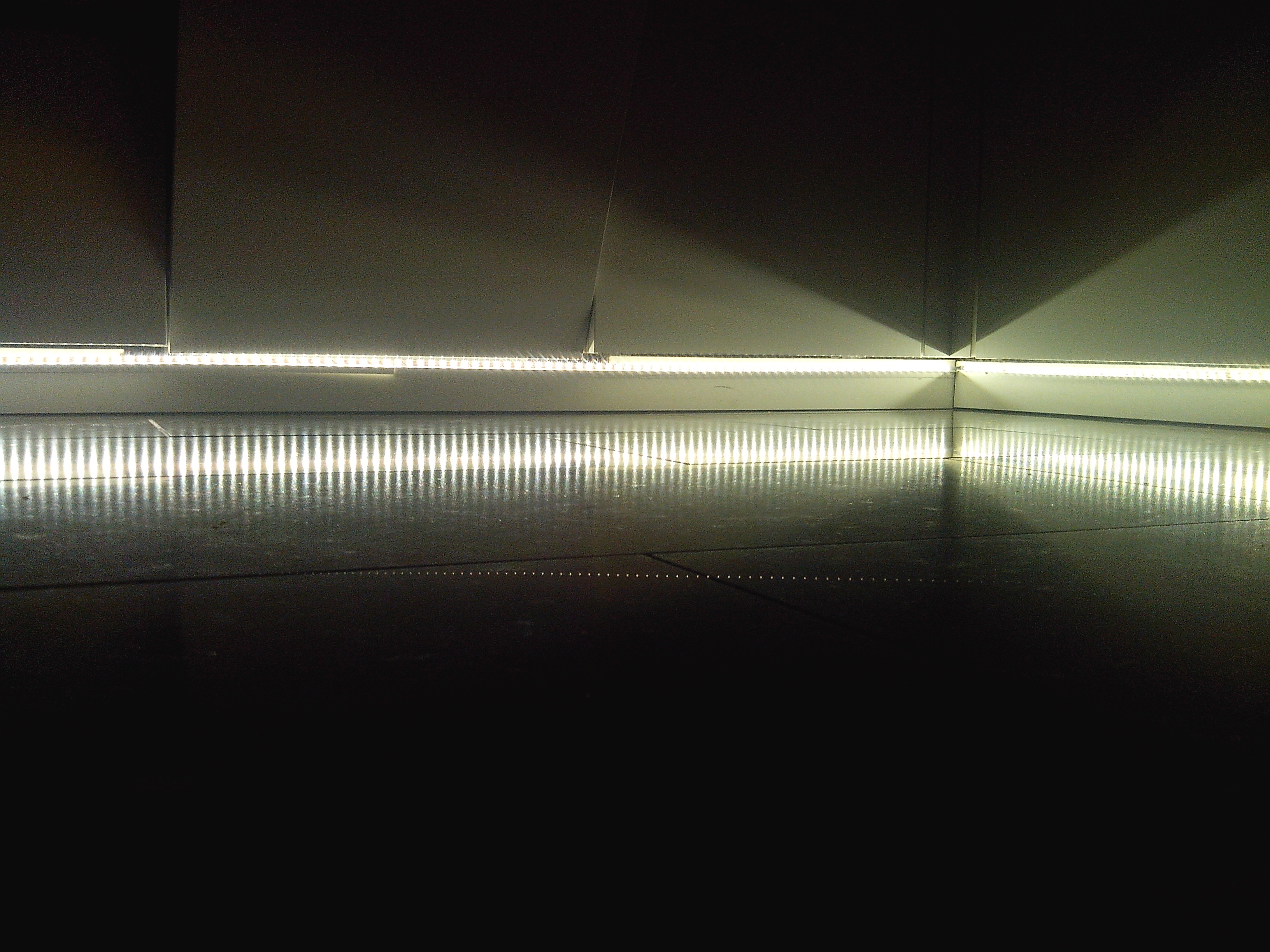 Nb, het is een hoekkeuken, waardoor dus de reflectie van de plintverlichting op de deuren.