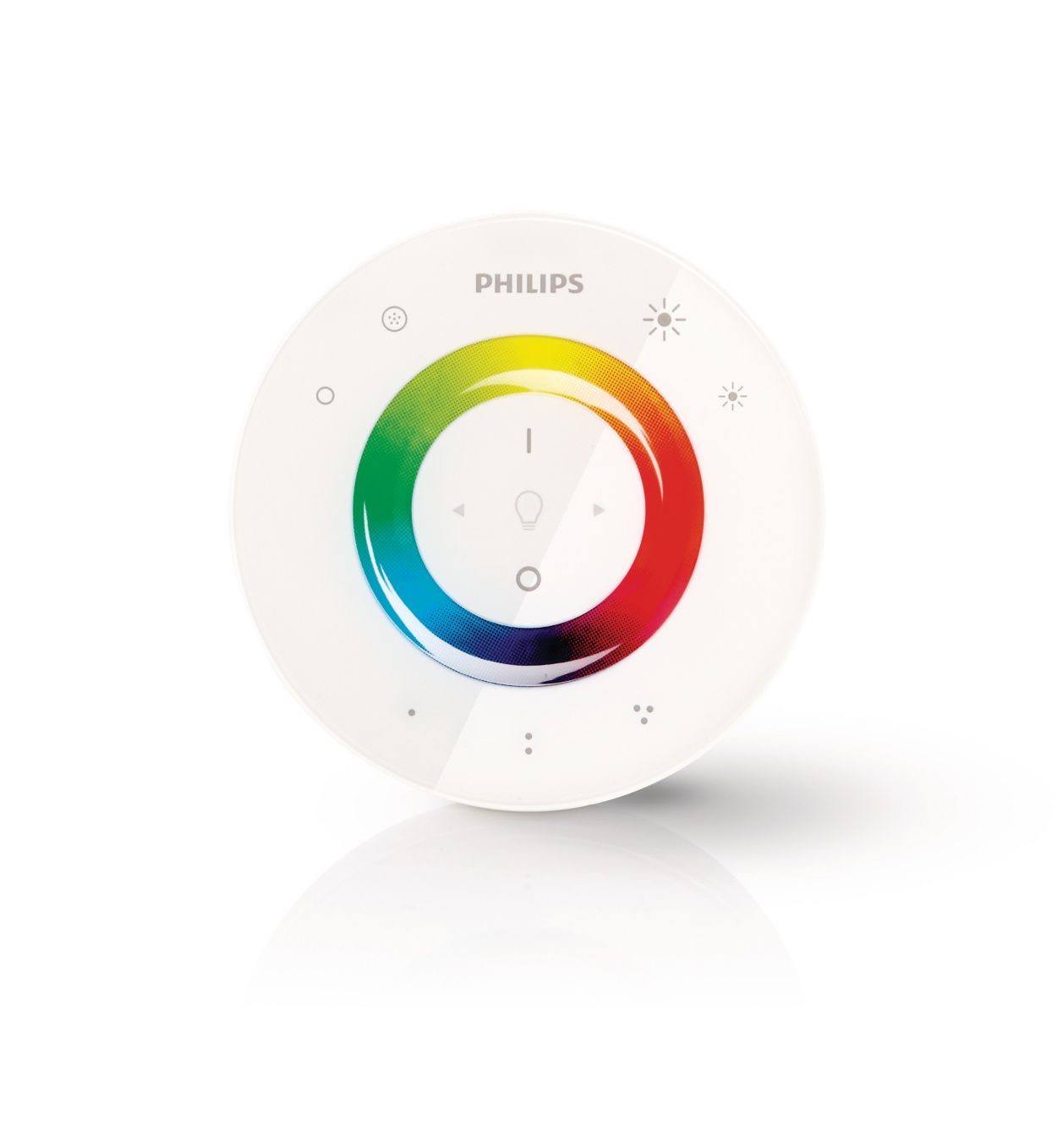 - LivingColors Gen 3 (heeft 2 fysieke knoppen voor scenes, een aan/uit wip knop en een fysiek draaiwiel voor de kleur) (plaatje)