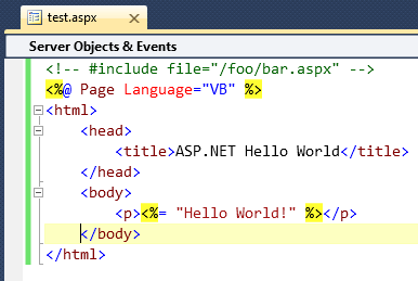 Dit werkt allemaal prima, maar zodra ik een include (<!-- #include file="..." -->) erin zet, gaat de highlighting van dat ene document uit. Weet iemand hier een oplossing voor?