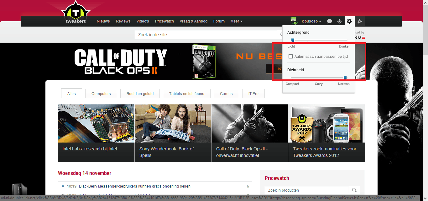 Als ik in de dropdown vervolgens op de bekijk alle berichten klik ga ik naar de advertentie (In dit geval van black ops) ipv. naar mijn berichten.