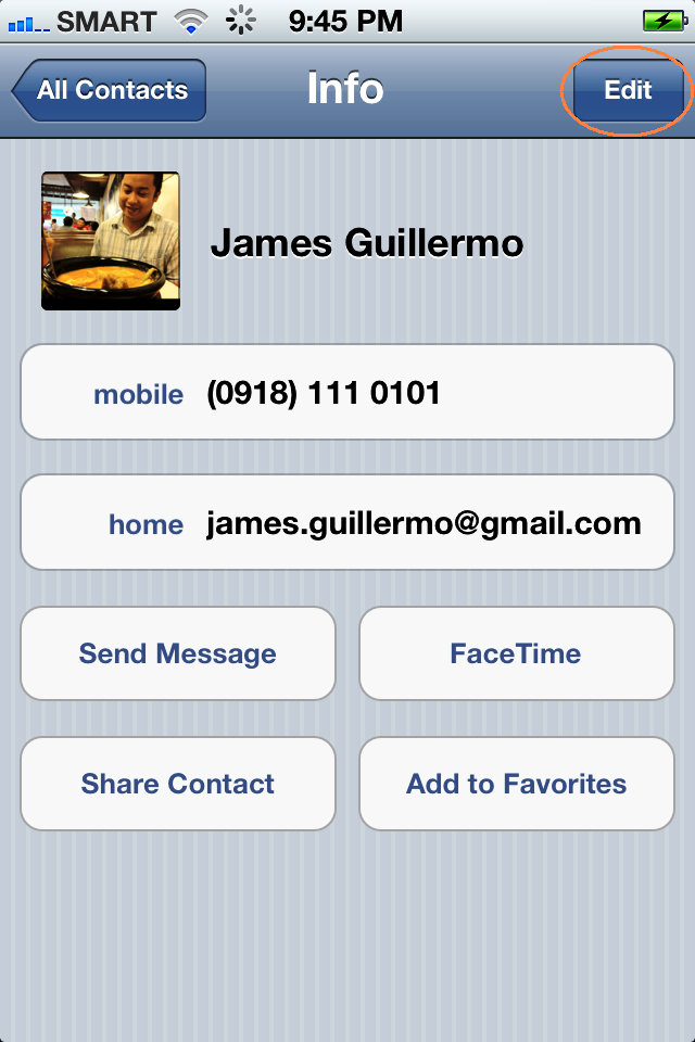 dit plaatje. Je ziet onder het e-mailadres 4 opties staan. Je moet daar voor FaceTime kiezen voor een FaceTimegesprek, ipv. op het mobiele nummer te drukken