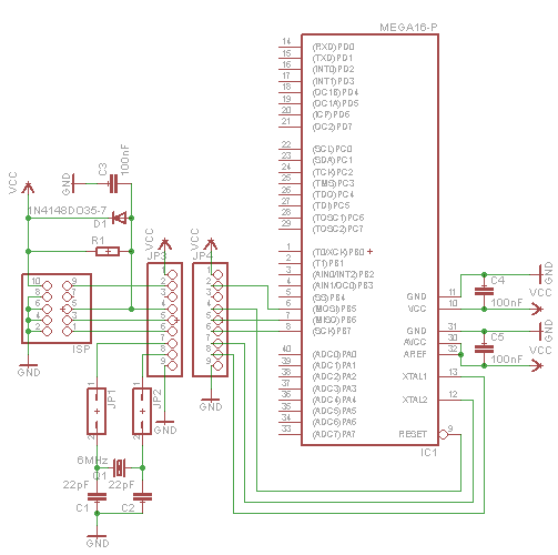 Nu heb ik het eea gemeten, de uC controller krijgt gewoon zijn GND en +5V, programmeerlijnen zijn laagohmig dit moet eigenlijk ook wel anders zou de microcontroller die ik geleend heb ook niet te programmeren zijn. (Gebruik dezelfde boards telkens). Dus op farnell deze besteld: