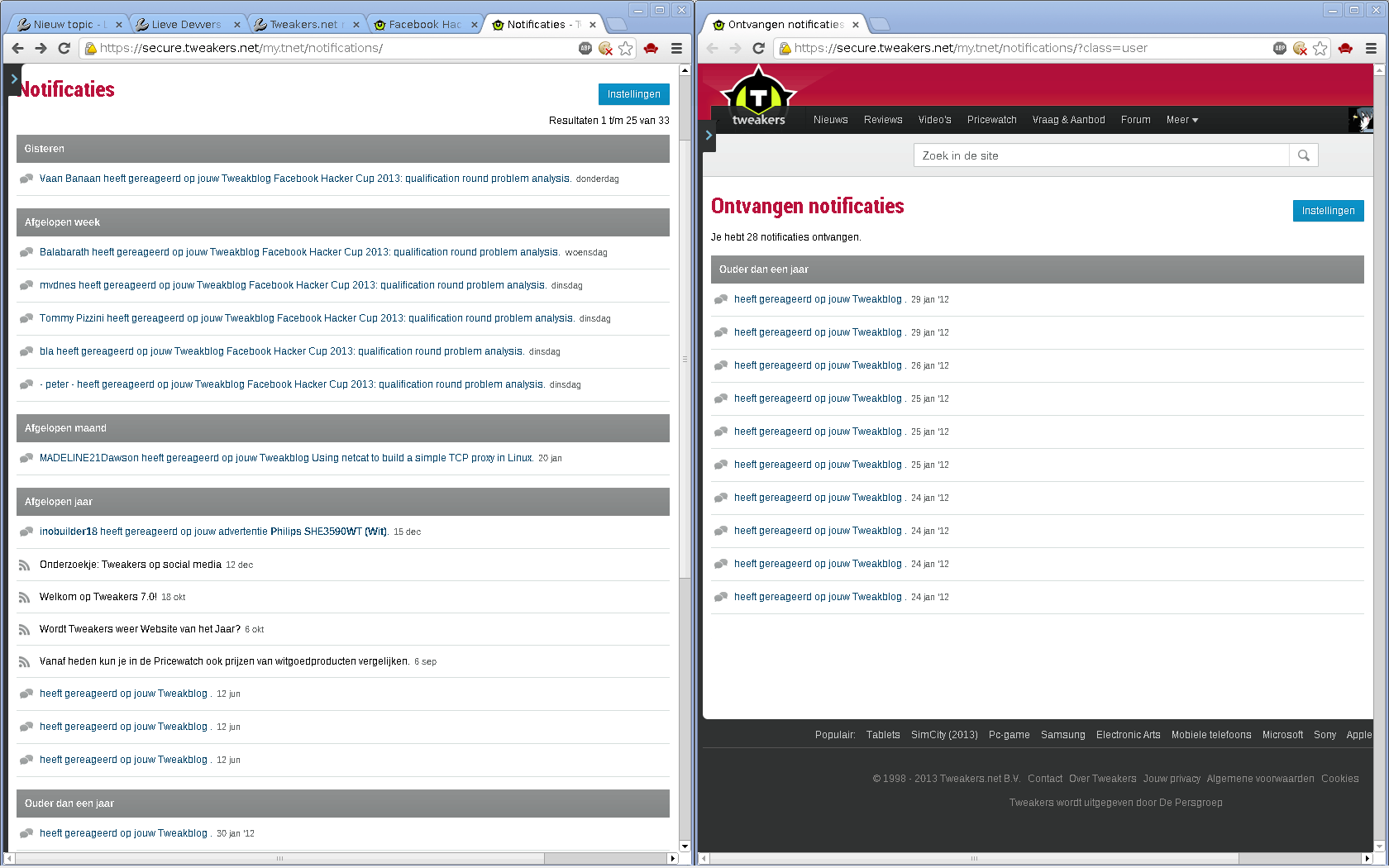 Verder heeft de link uit de notificatie per e-mail (met ?class=user op het eind, dus: https://secure.tweakers.n...notifications/?class=user) een ander probleem: daar staan überhaupt alleen maar oude notificaties op. (De oudste 10 reactienotificaties, lijkt het, maar misschien is dat toeval.)