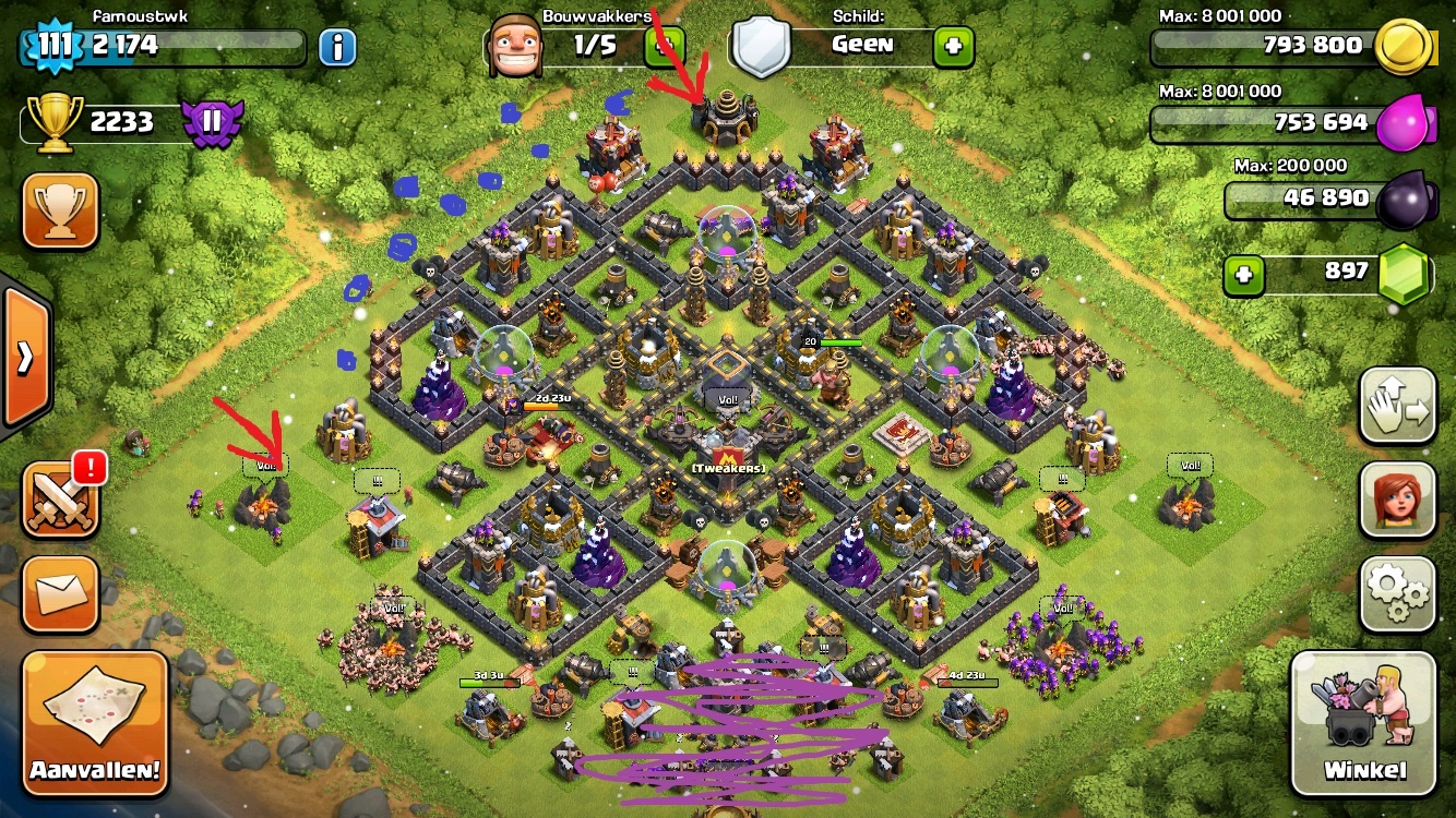 Momenteel farm ik trouwens in kristal 2 en met die max inferno's en grotendeels lvl8 muren word ik echt (letterlijk) niet meer aangevallen. Alleen TH-snipes. Nu 4 miljoen elixer, 7,5 miljoen goud en 90k DE en nog durven ze het niet aan. Ik durf nu prima mijn schild te verbreken voor 1 aanval, kost me alleen wat cups als ze mijn th weer pakken.