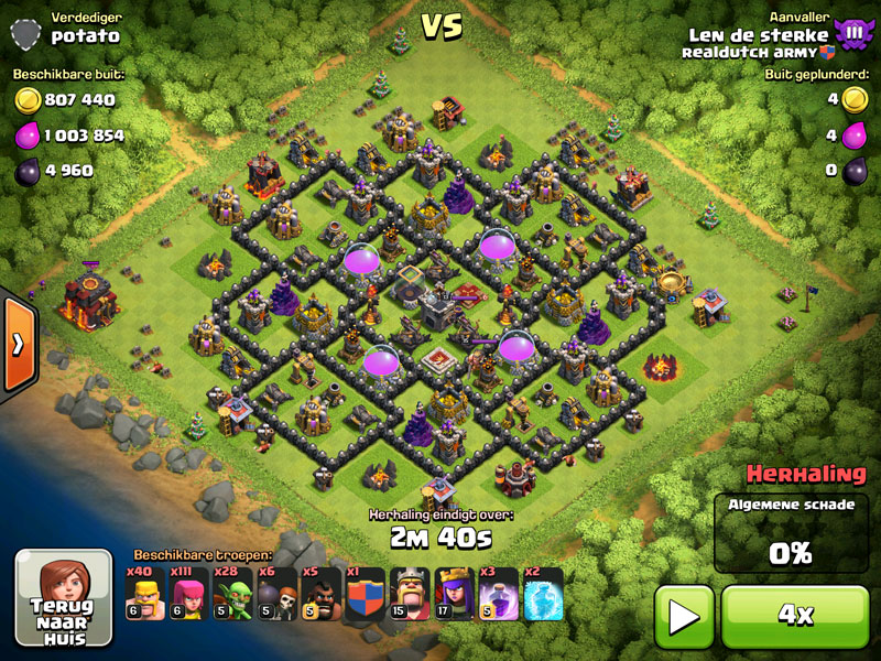 Nog even een reactie op mijn eigen post hierboven, over de rushed clan waar wij tegen moeten in de clan wars. We maken ze verschrikkelijk kapot! Onze TH8 en TH7 halen gewoon sterren op hun rushed bases en die tegenstander faalt echt verschrikkelijk hard.