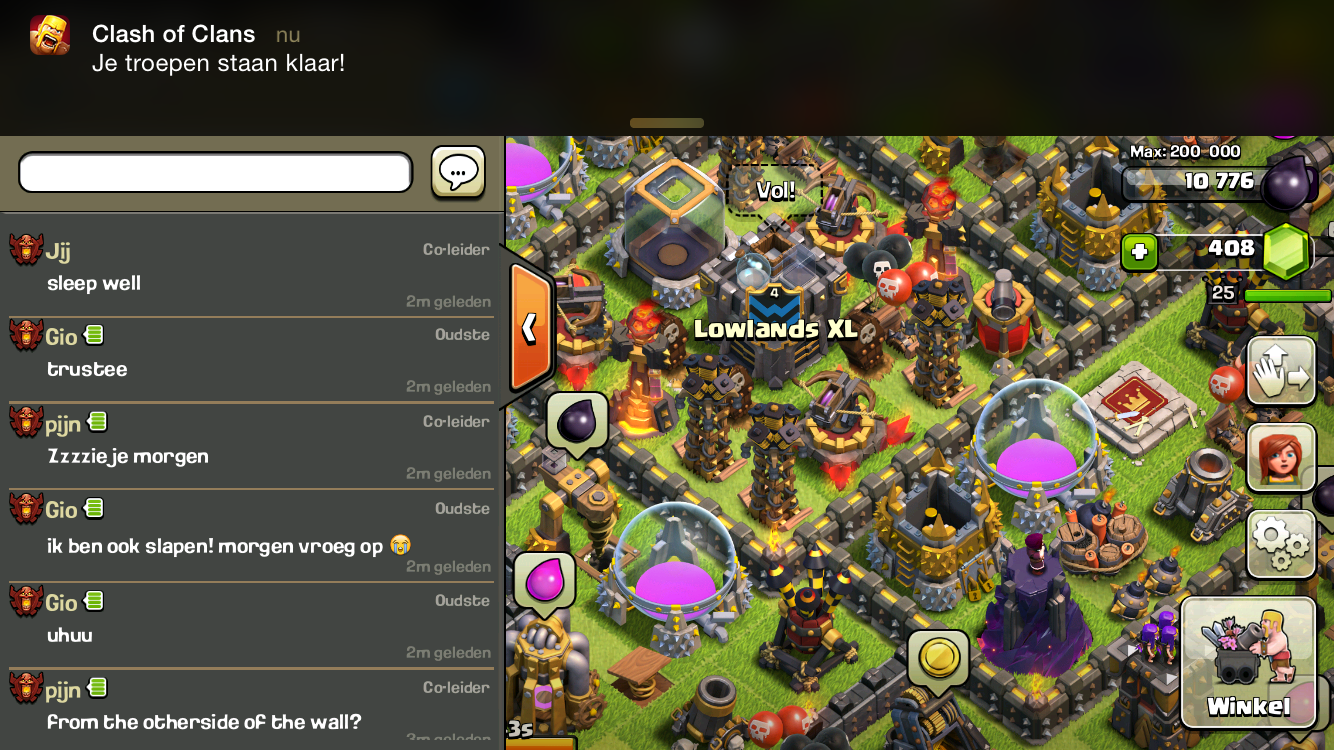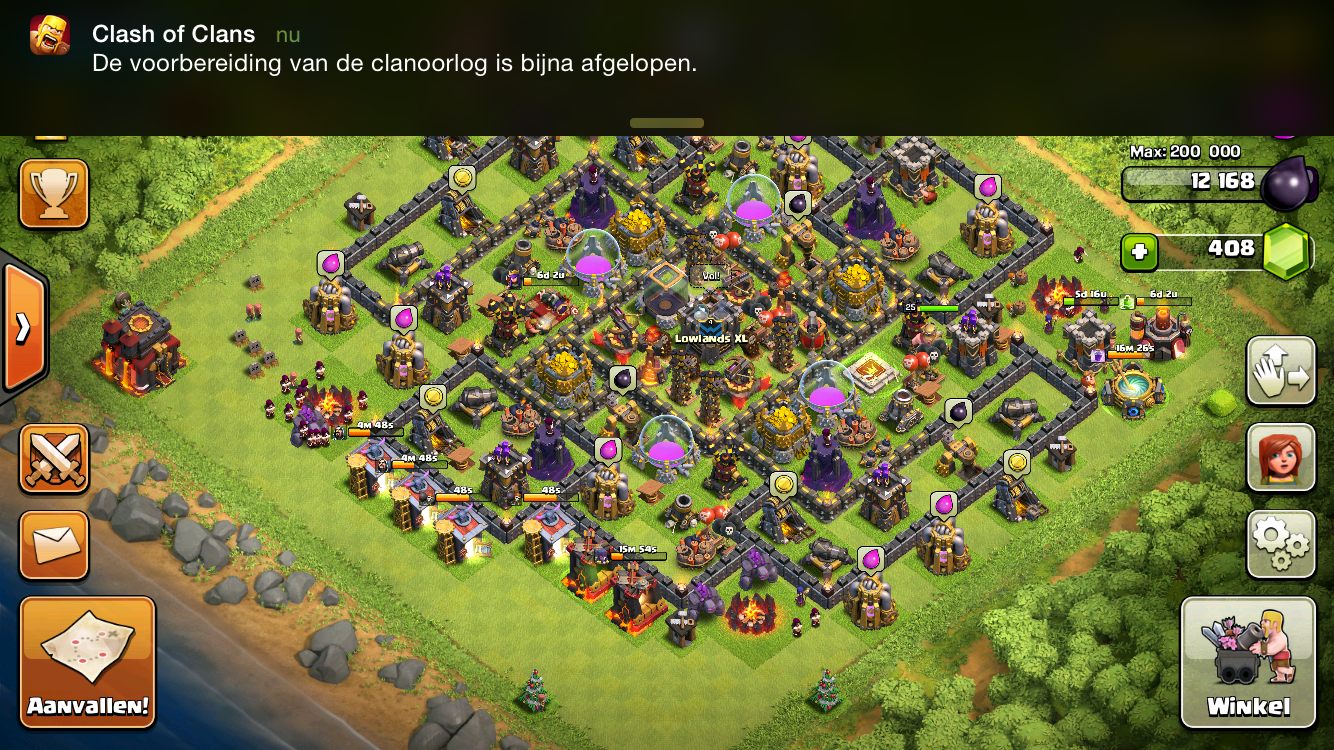 Moet alleen alle kanonnen en alle boogschutterstorens nog van 12 naar 13, maar merk dat ik steeds minder speel de laatste weken. Alleen actief clanwar 2x per week en max 3 a 4 aanvallen per dag