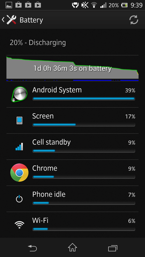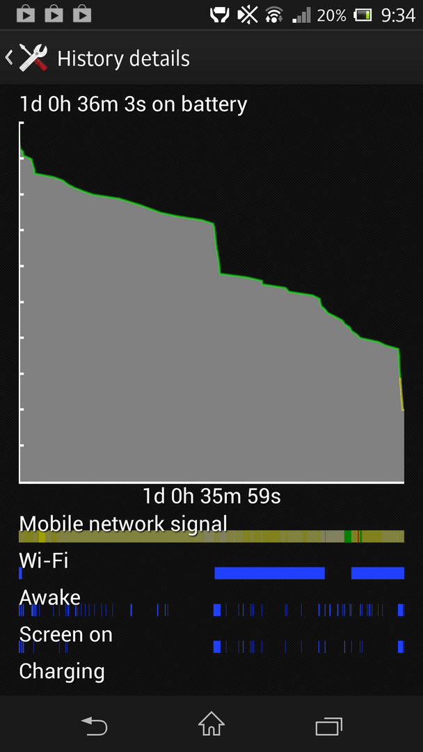 Nog even wat screenshot's van mijn accuduur van de Xperia Z. Ik ben er erg tevreden mee!