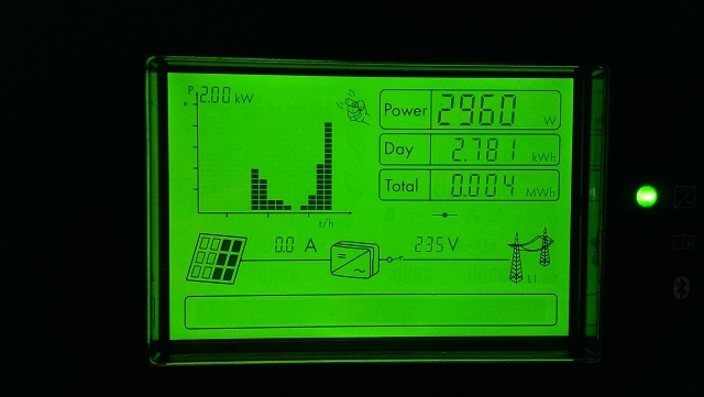 En nog even een screenshotje van het schermpje van de omvormer (maf trouwens dat de achtergrondverlichting aan gaat door op het schermpje te tikken