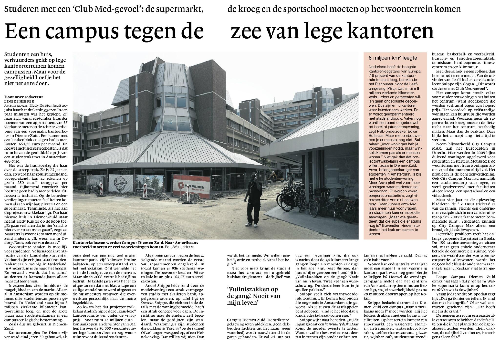 Ondertussen in Diemen worden -door omzetten van kansloze kantoorruimte- 936 studentenwoningen opgeleverd, met een slogan als "Studeren met een Club Med gevoel"...