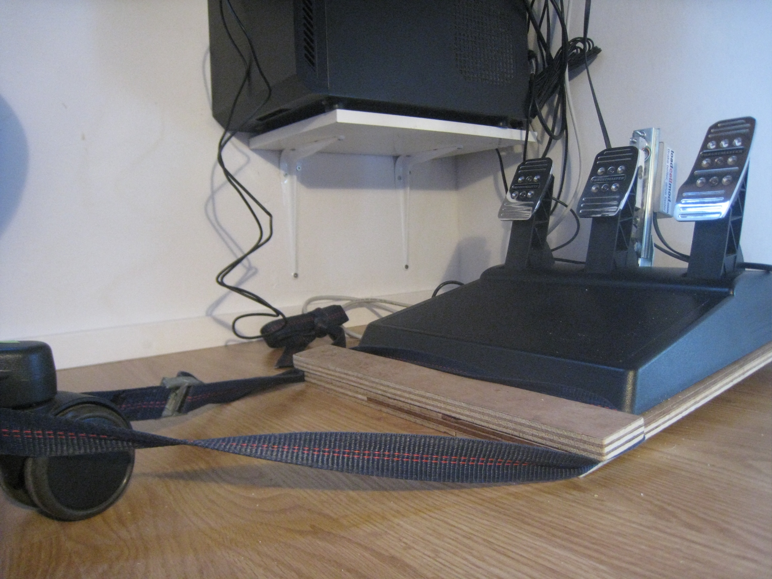 Na dit een weekje gespeeld te hebben merkte ik dat ik de pedalen niet op de juiste stand kreeg, het voelde gewoon niet fijn en na een poosje gegamed te hebben kreeg ik te maken met krampen. Ook had ik met de modificatie in de pedalen last van het wegschuiven, toen besloten om het geheel inverted op te hangen met dit als resultaat.