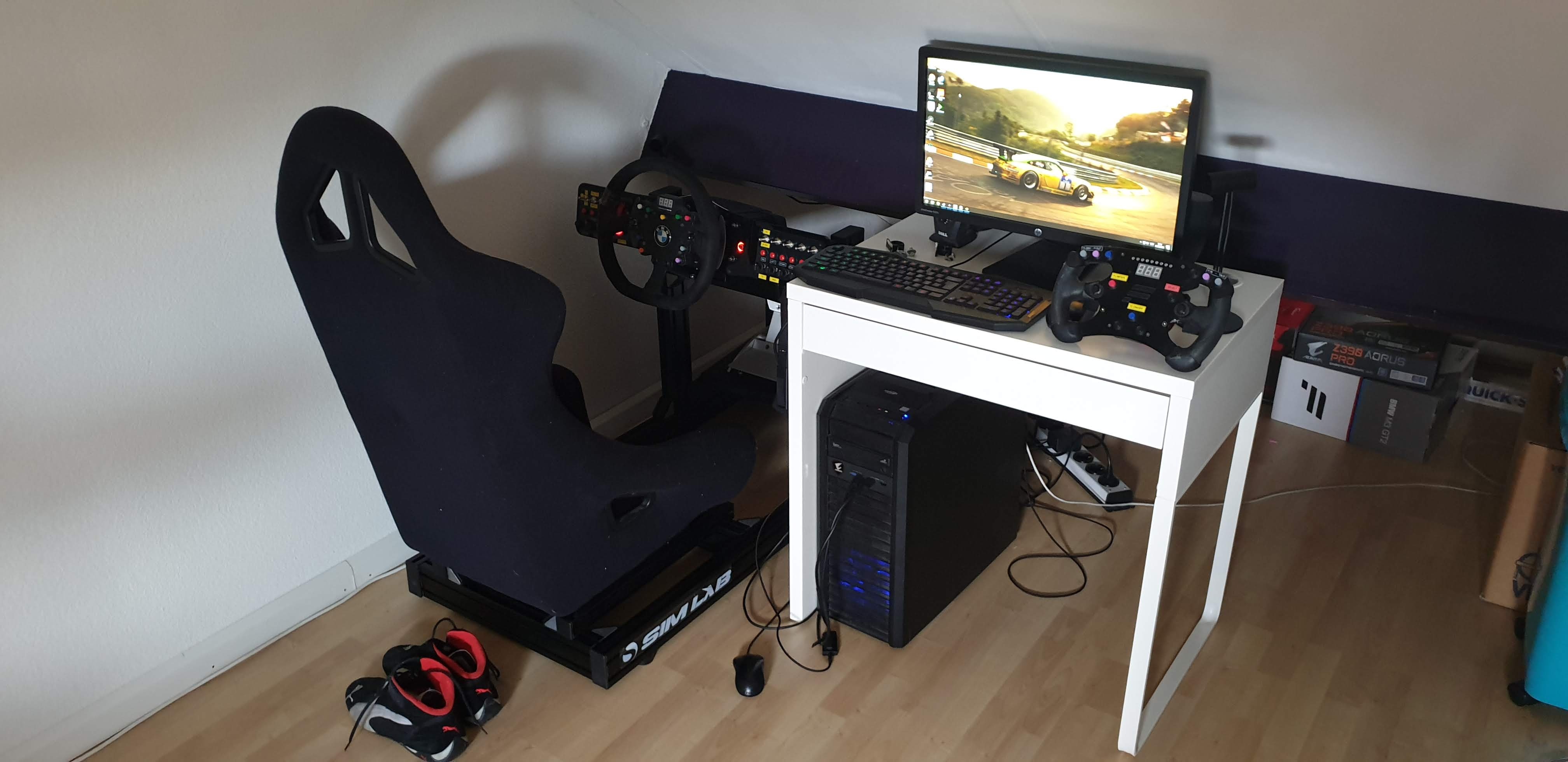 Na bijna een jaar een Playseat Challenge gebruikt te hebben begon de stof los te laten. Gelukkig binnen garantie en kreeg mijn geld terug. Toen gaan kijken wat te kopen. Weer een Challenge want die beviel goed of toch iets vasters. Omdat ik inmiddels een ruimte had waar ik de seat kon laten staan besloten om iets anders te kopen. De keuze is uiteindelijk gevallen op de MaxRF1. Doorslag gaf de opties van het anders instellen en ook zeker een goede en snelle reactie en flexibiliteit van de verkoper bij een paar vragen. Zo boden ze aan om voor de pedalenset die ik heb(Fanatec CSR Elite) de gaten te boren. Daar uiteindelijk niet voor gekozen, maar aanbod is natuurlijk zeer netjes.