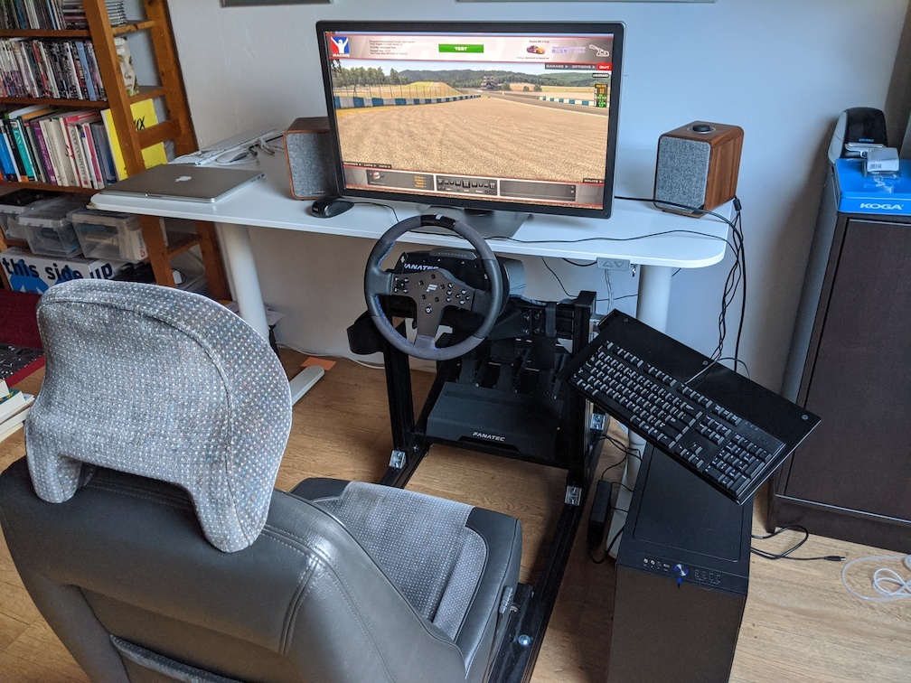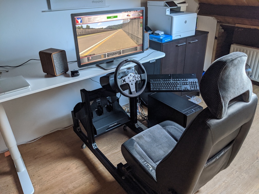 Op de valreep mijn simracing-rabbithole nog wat dieper gemaakt. Lomper dan dit kan niet zonder mijn kamer grondig te verbouwen, dus voorlopig moet het maar goed zijn. De G29 kan Marktplaats op