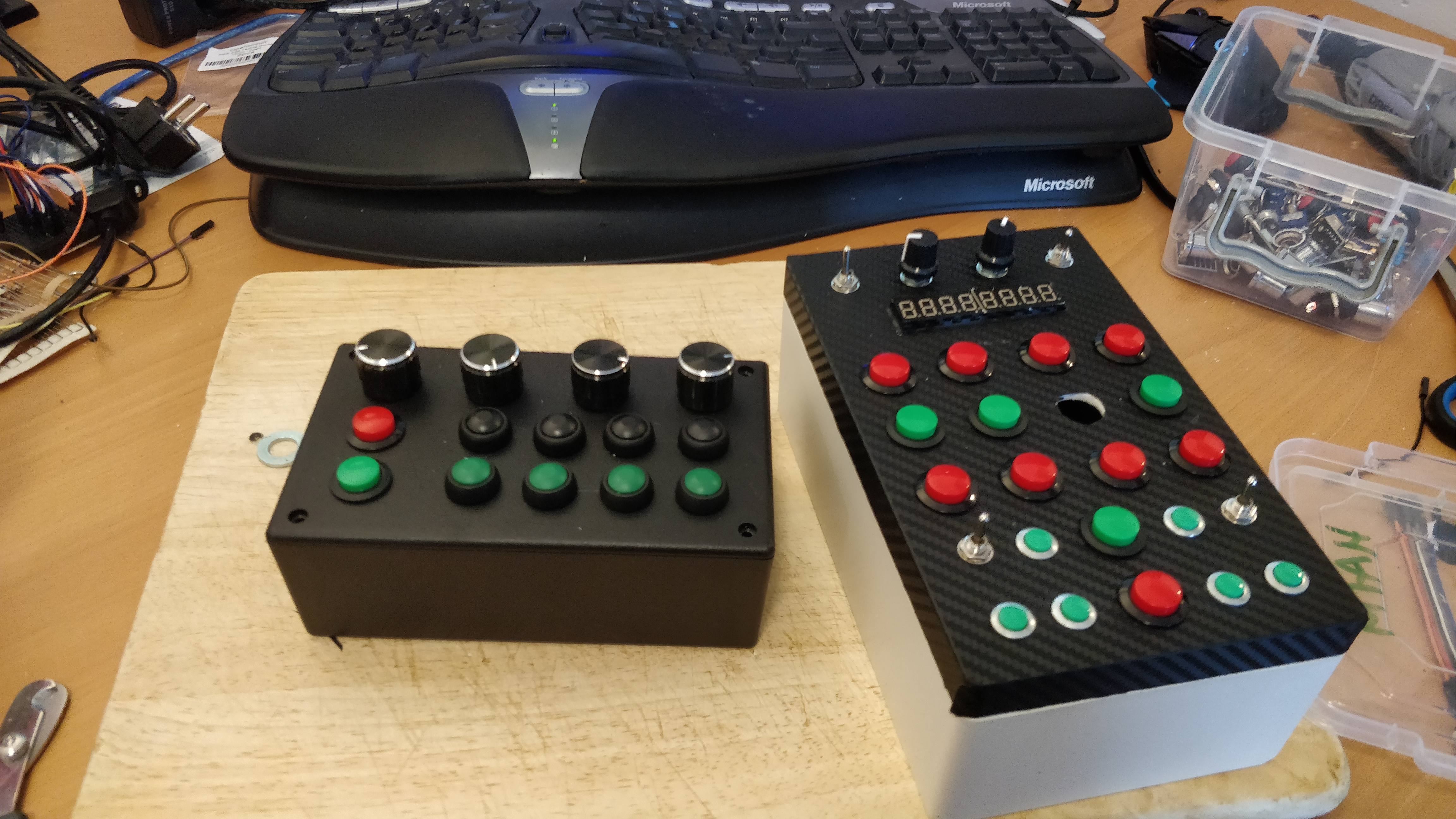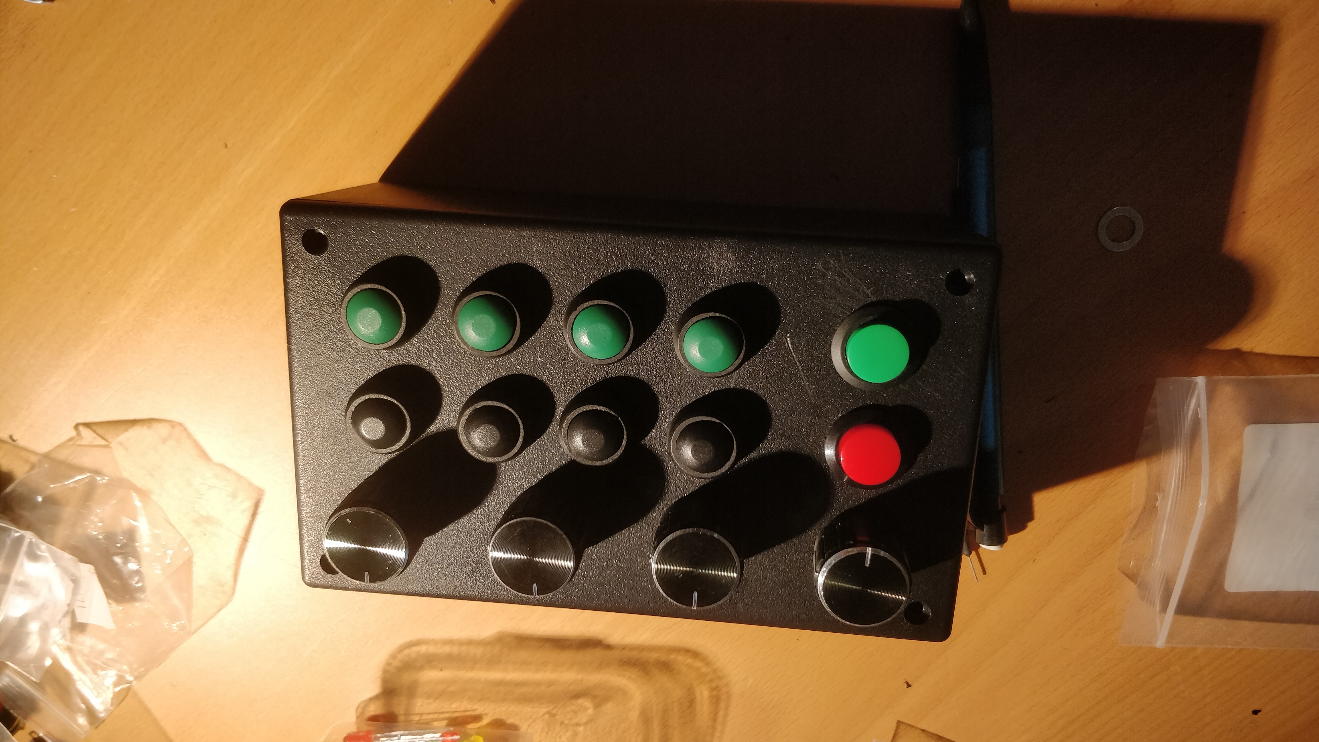 Wil je ook een button-box? Heb je de benodigde boren, dremel, soldeer station en geduld. Leuk projectje! Anders koop een kant-en-klaar exemplaar op Internet. Ik ben dagen bezig geweest met het meten, boren, programmeren, solderen, meten, opnieuw solderen etc.
