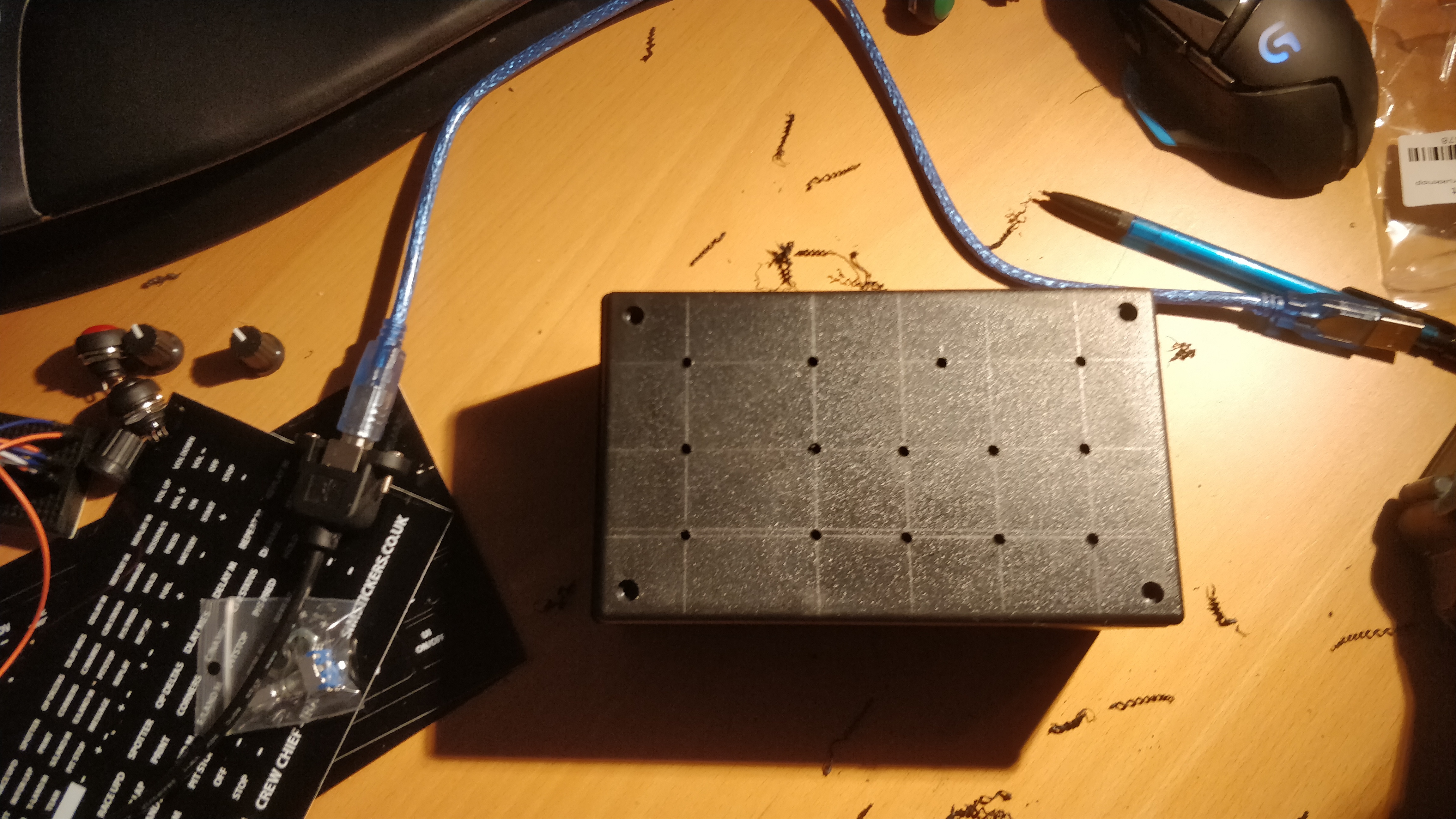 Materiaalkosten zijn ongeveer 20 euro voor het doosje alleen. 6 euro voor het doosje, Arduino is 4 euro. Buttons zijn minder dan 25 cent per stuk als je wat geduld kunt hebben. En de rotary encoders zijn een twee euro per stuk. Ook heb ik bij de Action een Carbon plakfolie gehaald. Neem de matte variant, de glossy versie is niet mooi.