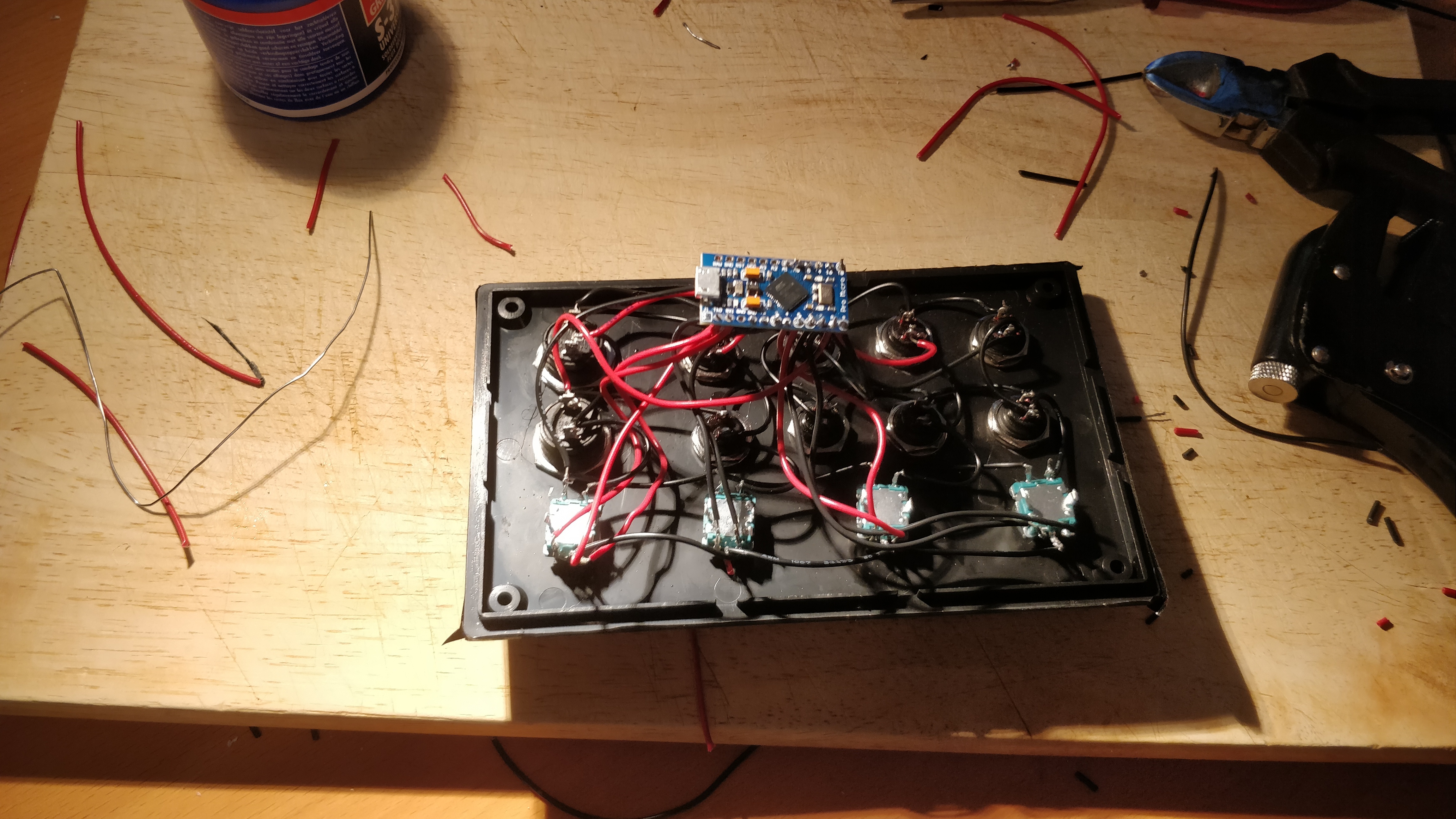 Een tweede button box (waarover later meer) wil ik veel knoppen hebben voor zaken als lampen, rembalans, ABS & TC settings en replay bediening. Deze is nog helemaal niet af (display programmatuur).